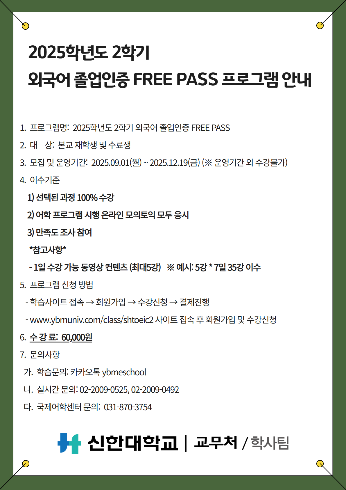 [외국어졸업인증] 2025학년도 2학기 외국어졸업인증 어학프로그램 운영 안내